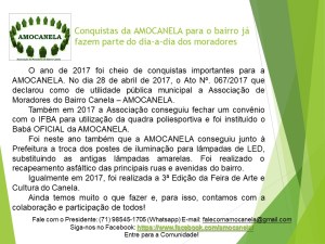 Conquistas da AMOCANELA para o bairro já fazem parte do dia-a-dia dos moradores Publicado em 8 de março de 2018 por amocanela
