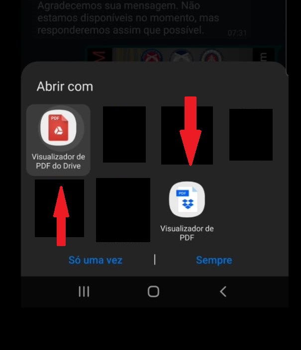 Em seguida, selecione um aplicativo ou programa visualizador de PDF em seu aparelho.