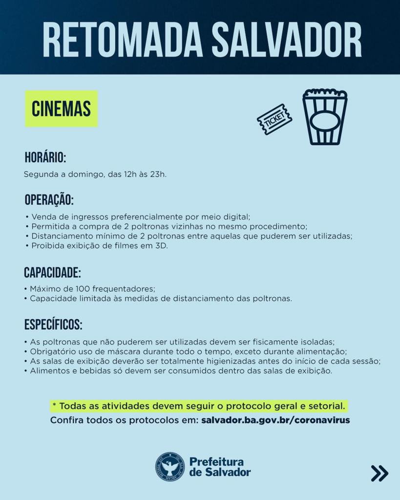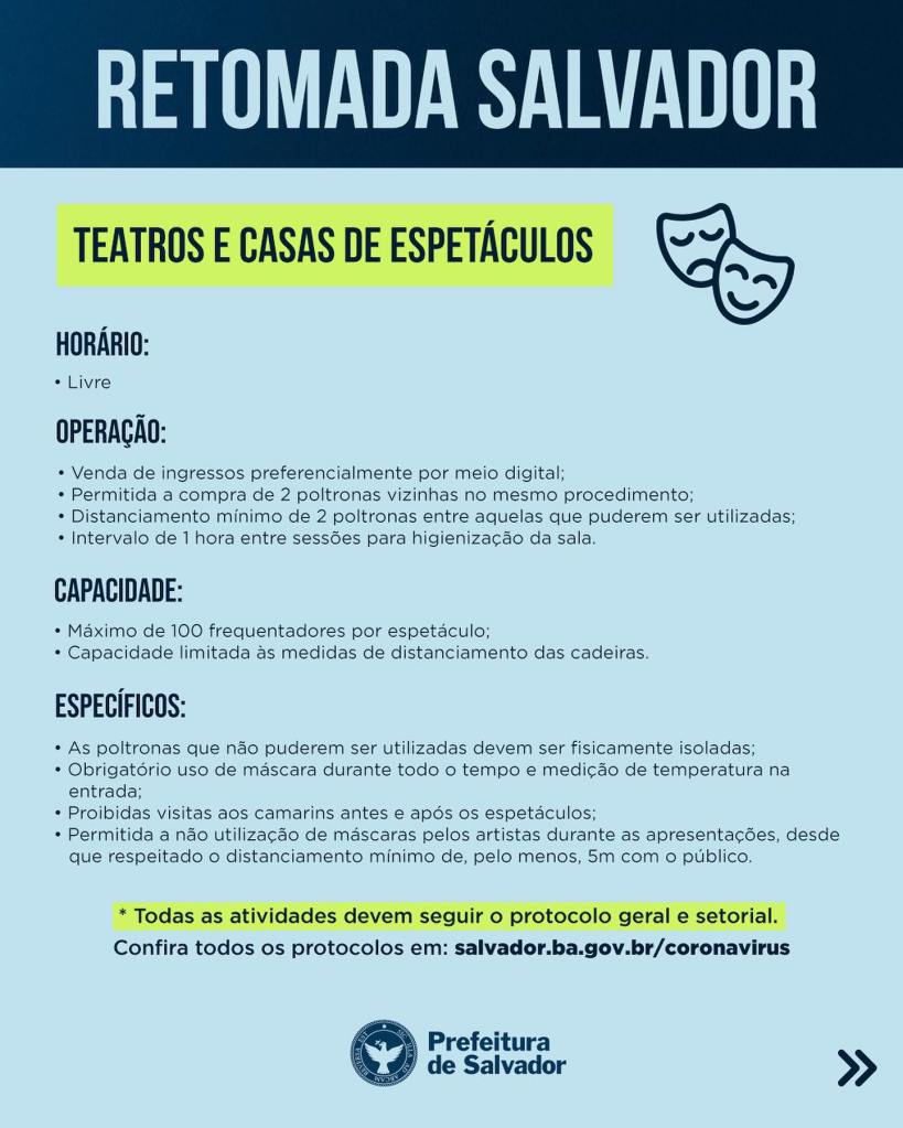 A partir de hoje, 14, ficam liberados em toda Salvador teatros, cinemas, centros de eventos e convenções e casas de espetáculo.