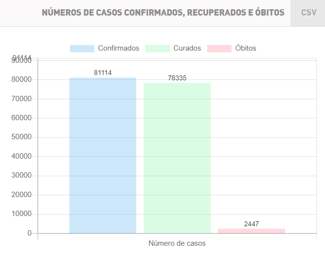Atualmente Salvador está com 81114 casos confirmados destes 78335 estão curados e houve 2447 óbitos.
