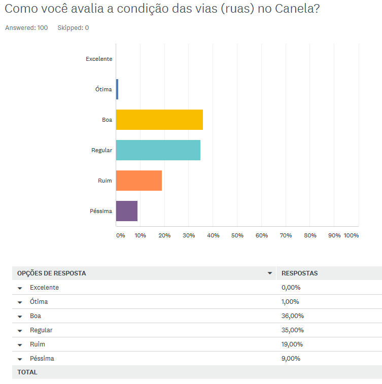 A Diretoria da Associação de Moradores do Bairro Canela – AMOCANELA realizou entre os dias 26 de agosto a 03 de setembro de 2020 uma pesquisa para avaliar a opinião dos respondentes sobre a qualidade da Gestão Municipal e dos Serviços Públicos no bairro Canela.