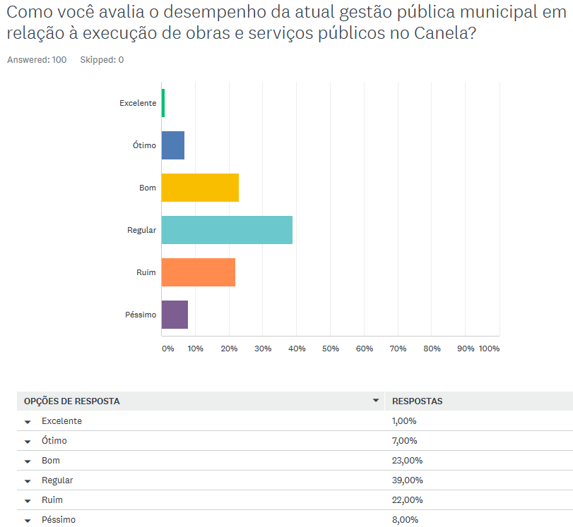 O 9º item do questionário teve como objetivo responder à seguinte pergunta: Como você avalia o desempenho da atual gestão pública municipal em relação à execução de obras e serviços públicos no Canela?