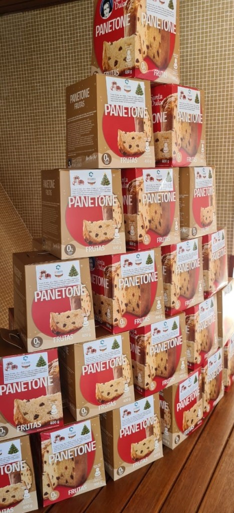 Assim, a aquisição dos panetones pela Associação ajudam tanto as Obras Sociais Irmã Dulce como as famílias que se beneficiaram com a Campanha de Apoio Social.