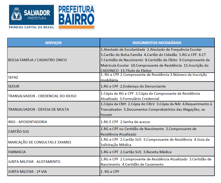 Dentre os serviços oferecidos pela Prefeitura-Bairro estão: