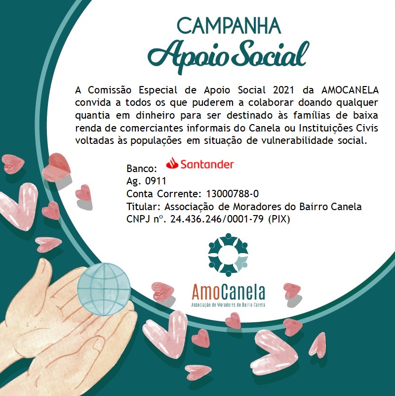 Para que a campanha continue, sua colaboração é muito importante e ela pode ajudar nossos vizinhos e vizinhas e suas famílias que estão sem poder trabalhar em razão da quarentena motivada pela pandemia de coronavírus.